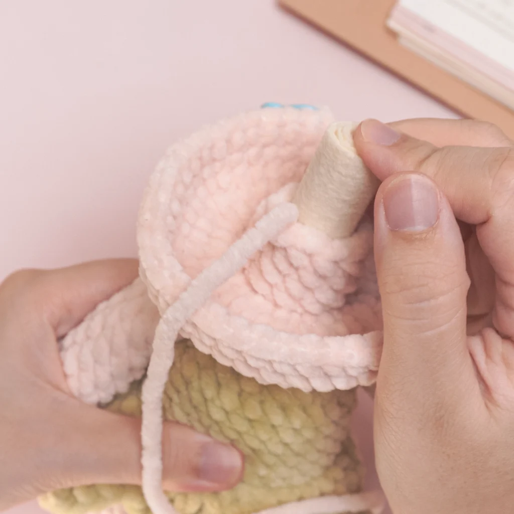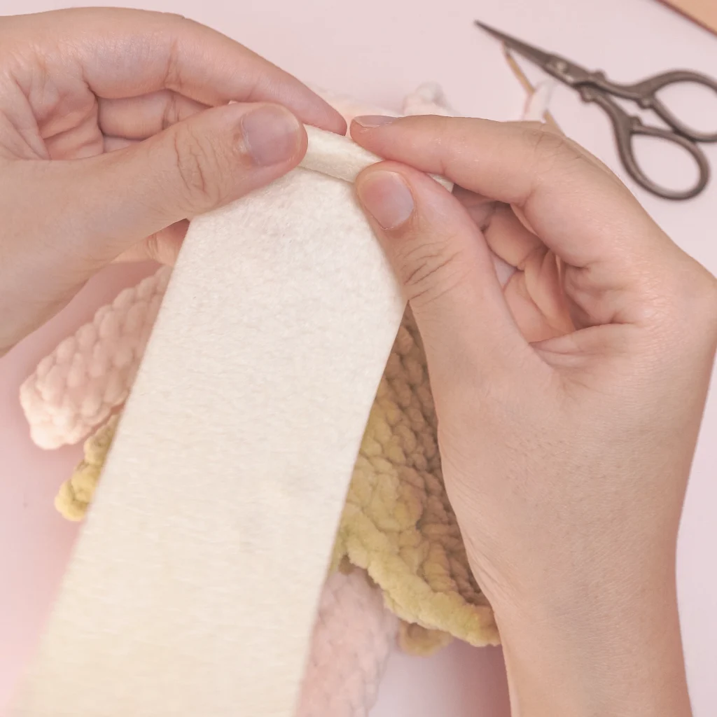 - The “Anchor” Stitch: Use a long yarn tail to sew the top of the tube to 1 or 2 stitches inside the head, in the back part of the head. This “anchors” the spine in place, ensuring it doesn’t shift when the doll is played with or washed.