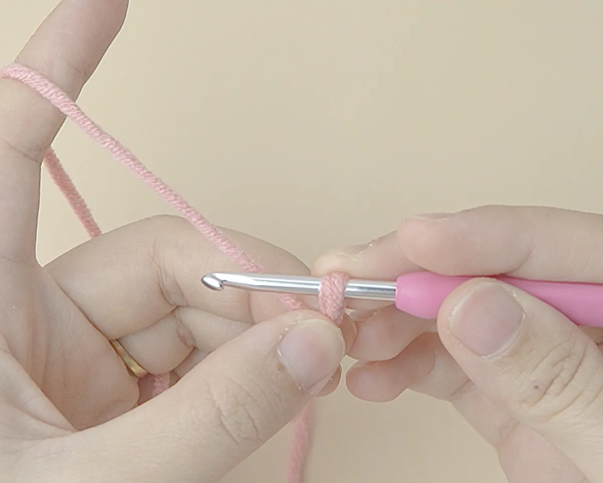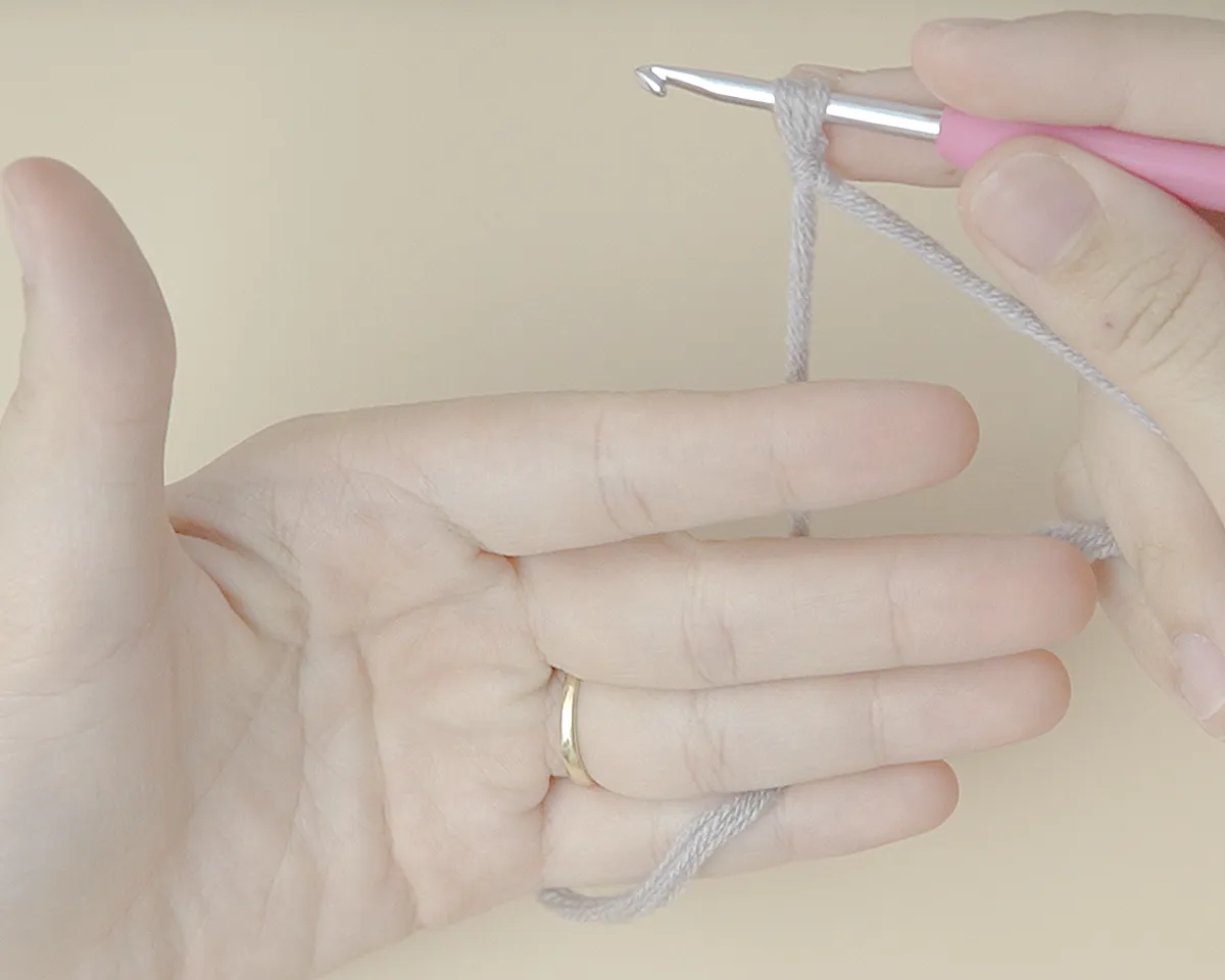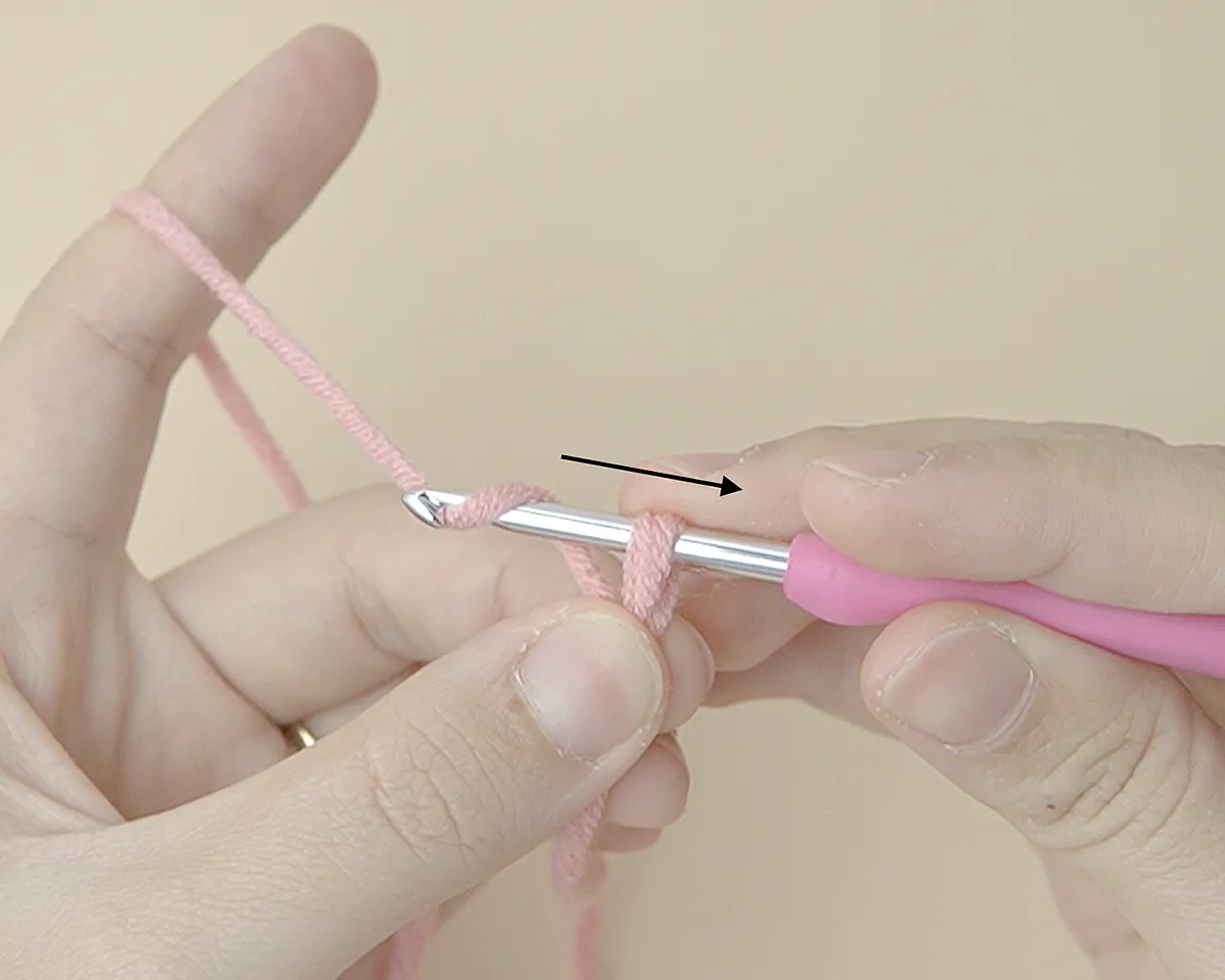 3. The Grip: Use your left thumb and middle finger to pinch your project. Use your right middle finger to steady the loop on the hook.
