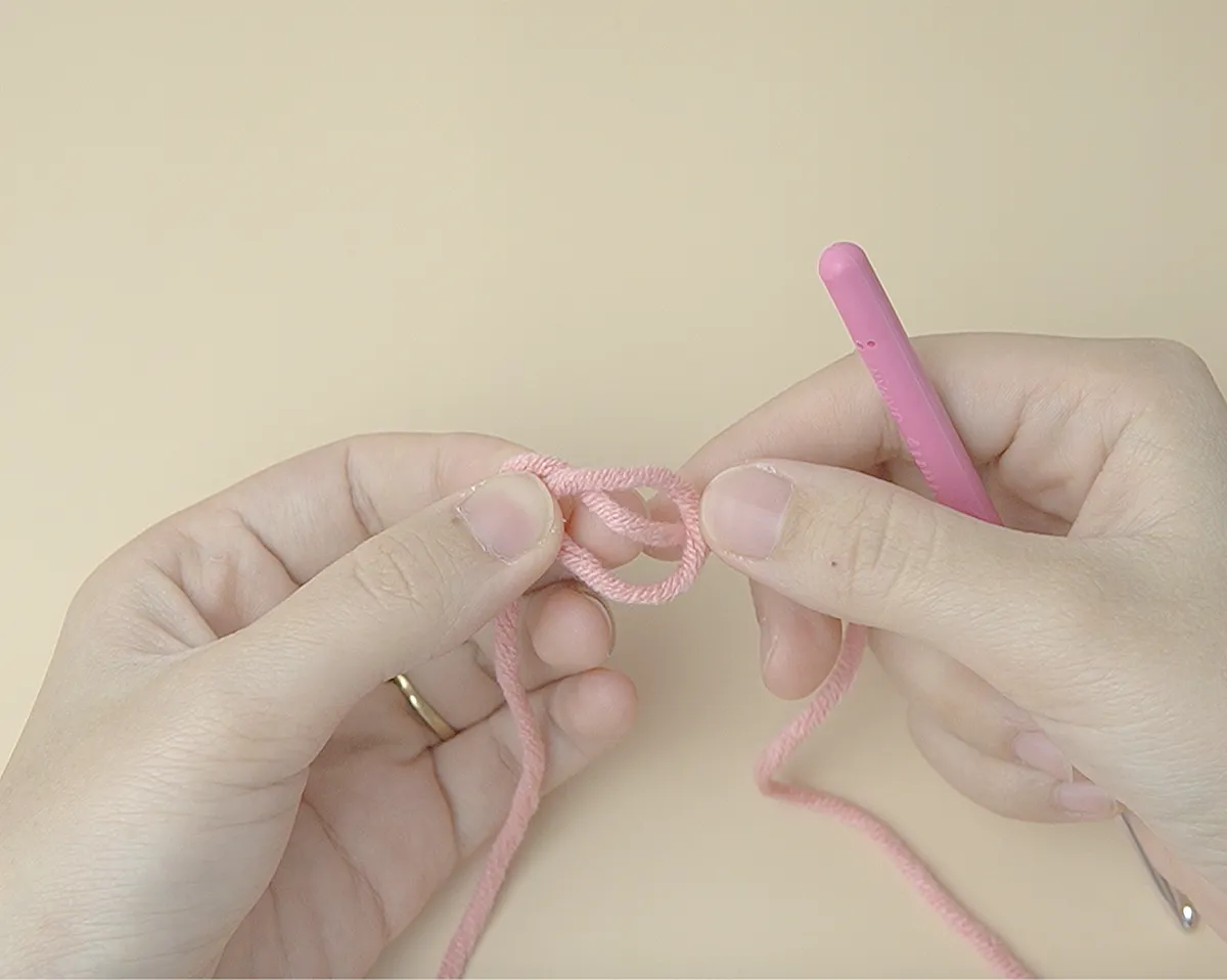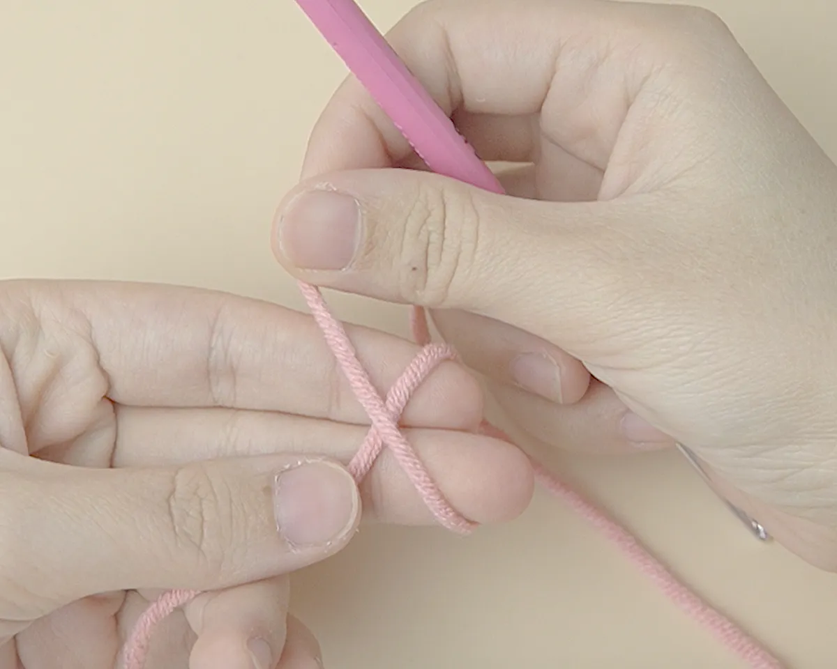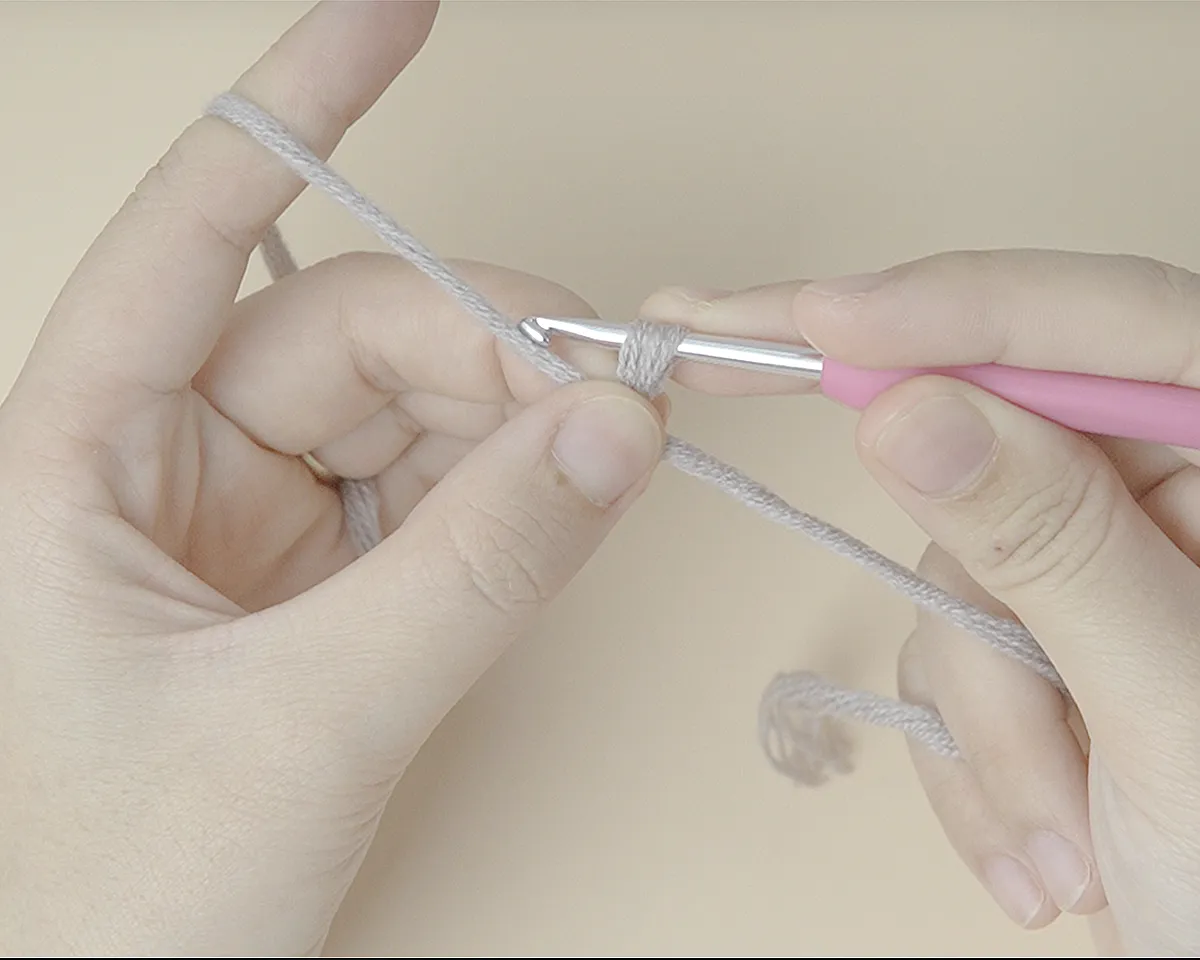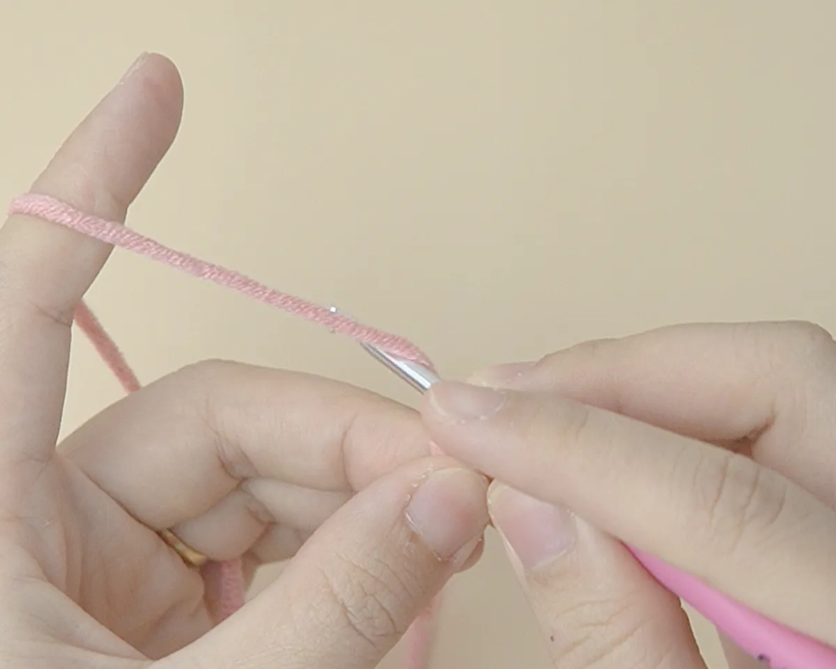 3. The Grip: Use your left thumb and middle finger to pinch your project. Use your right middle finger to steady the loop on the hook.