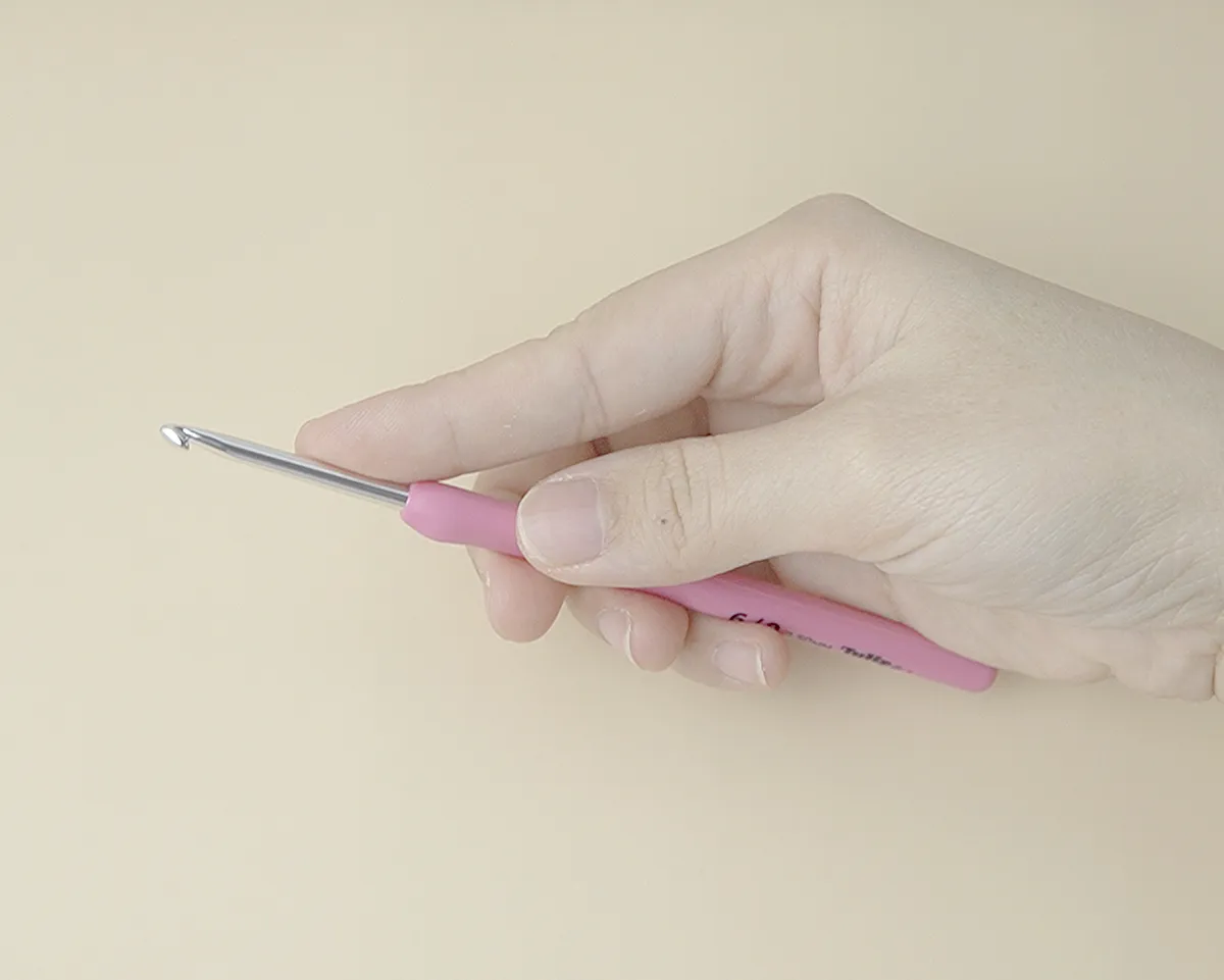 Knife Grip: Hold the hook exactly like a dinner knife. This is great for chunky yarn or larger hooks. Your index finger rests on the shaft to keep the loops steady.