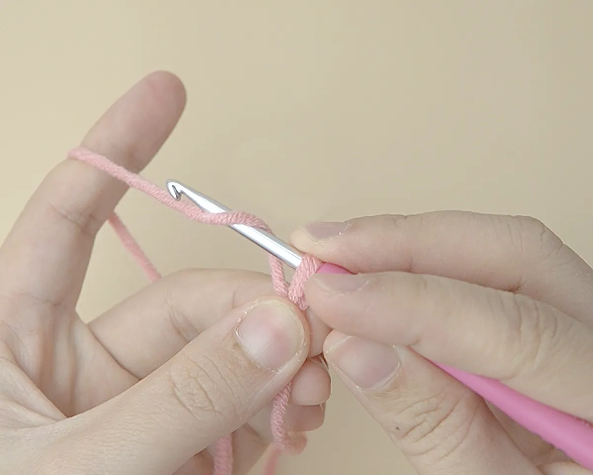 3. Move the hook from top to down to yarn over (now there’s one loop on your hook).