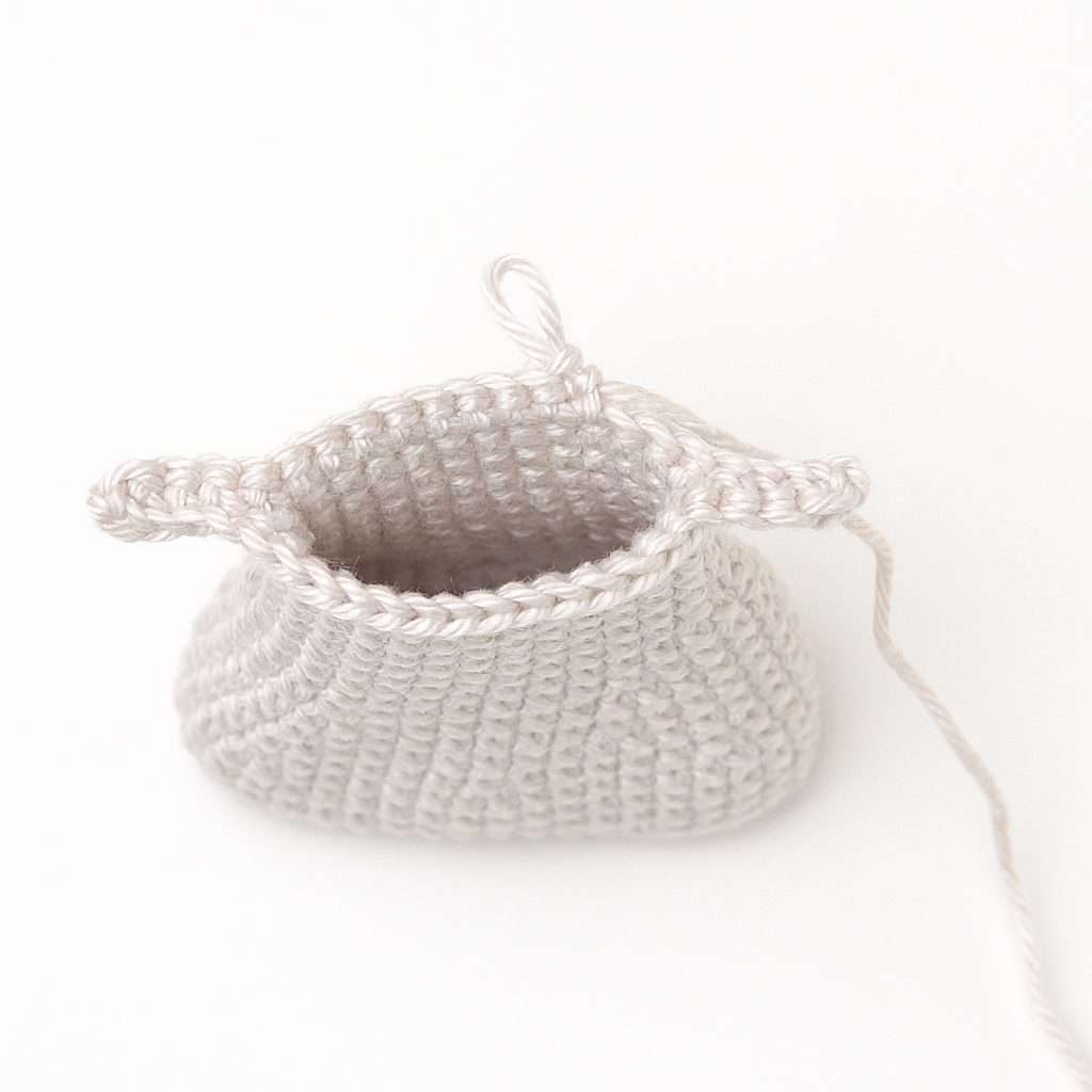 Rnd 14: 2 sc in the body, chain 3, 1 sc in the second chain from the hook, sc in the next chain, 10 sc in the body, chain 3, 1 sc in the second chain from the hook, sc in the next chain, 6 sc in the body. (28)