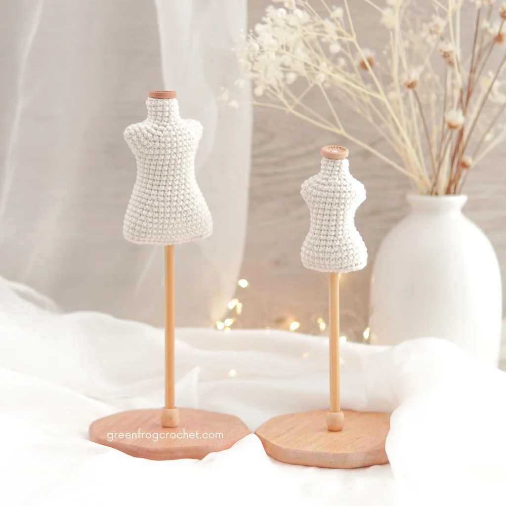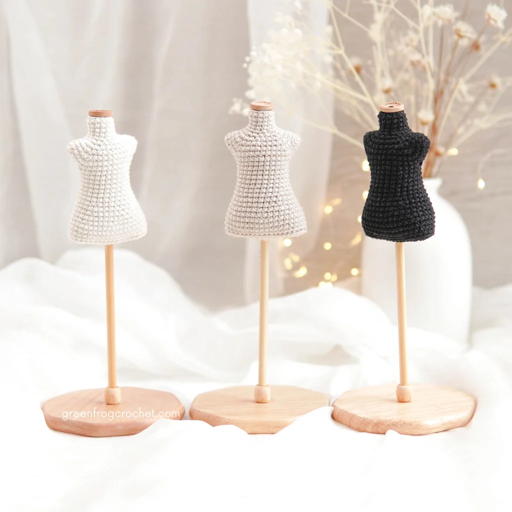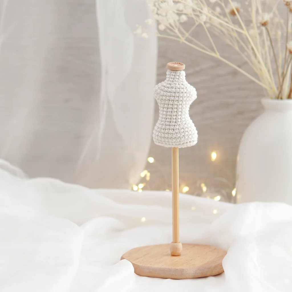 I think I am mostly known as a doll pattern maker. So today, we have a brand new thing to do if you are a crochet doll lover! This Mannequin Dress Form is a must-have accessory for handmade doll enthusiasts. It serves as both a professional display and a practical tool for measuring and fitting outfits without needing the actual doll.