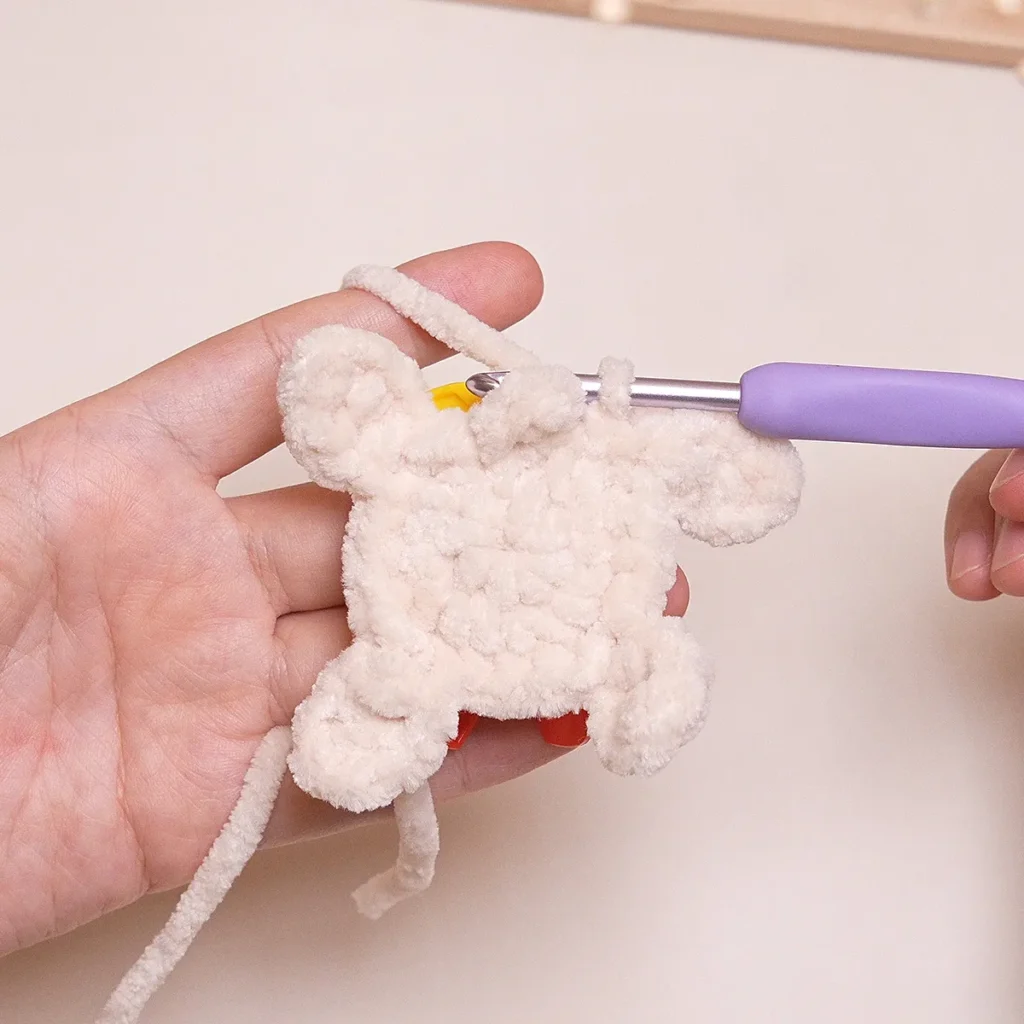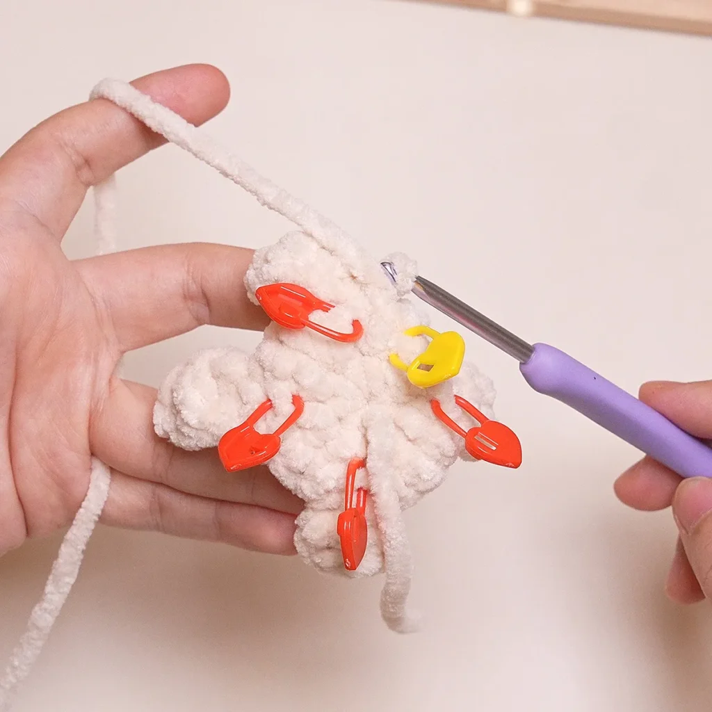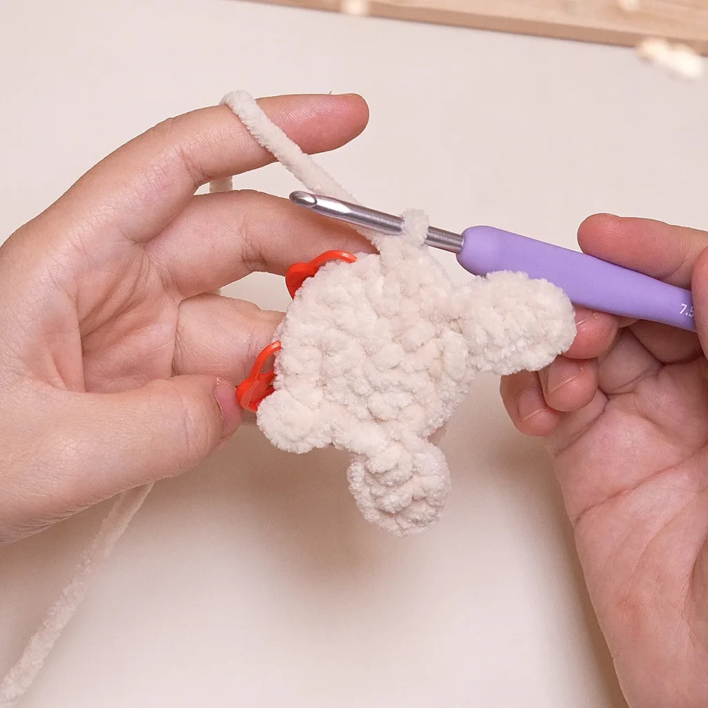Other materials and tools: Yarn needle, scissors, fiberfill, stitch marker.