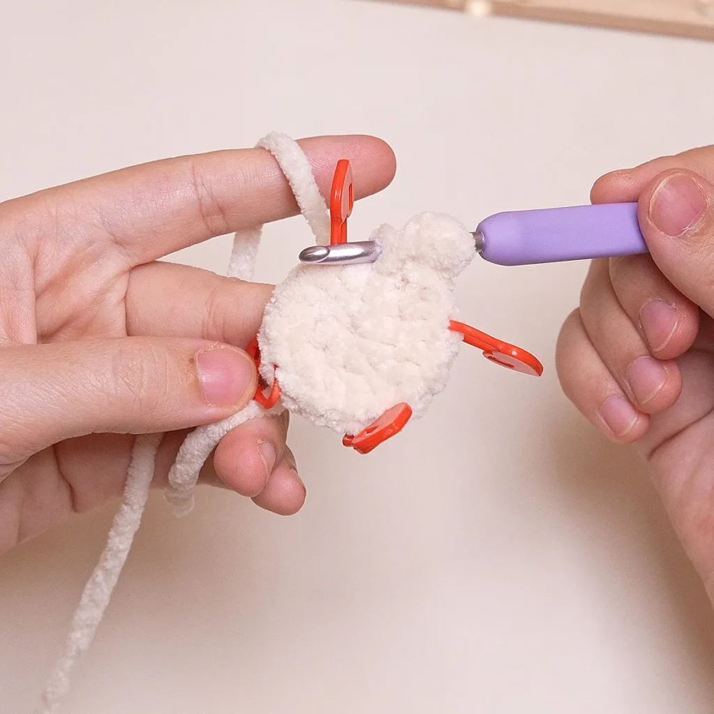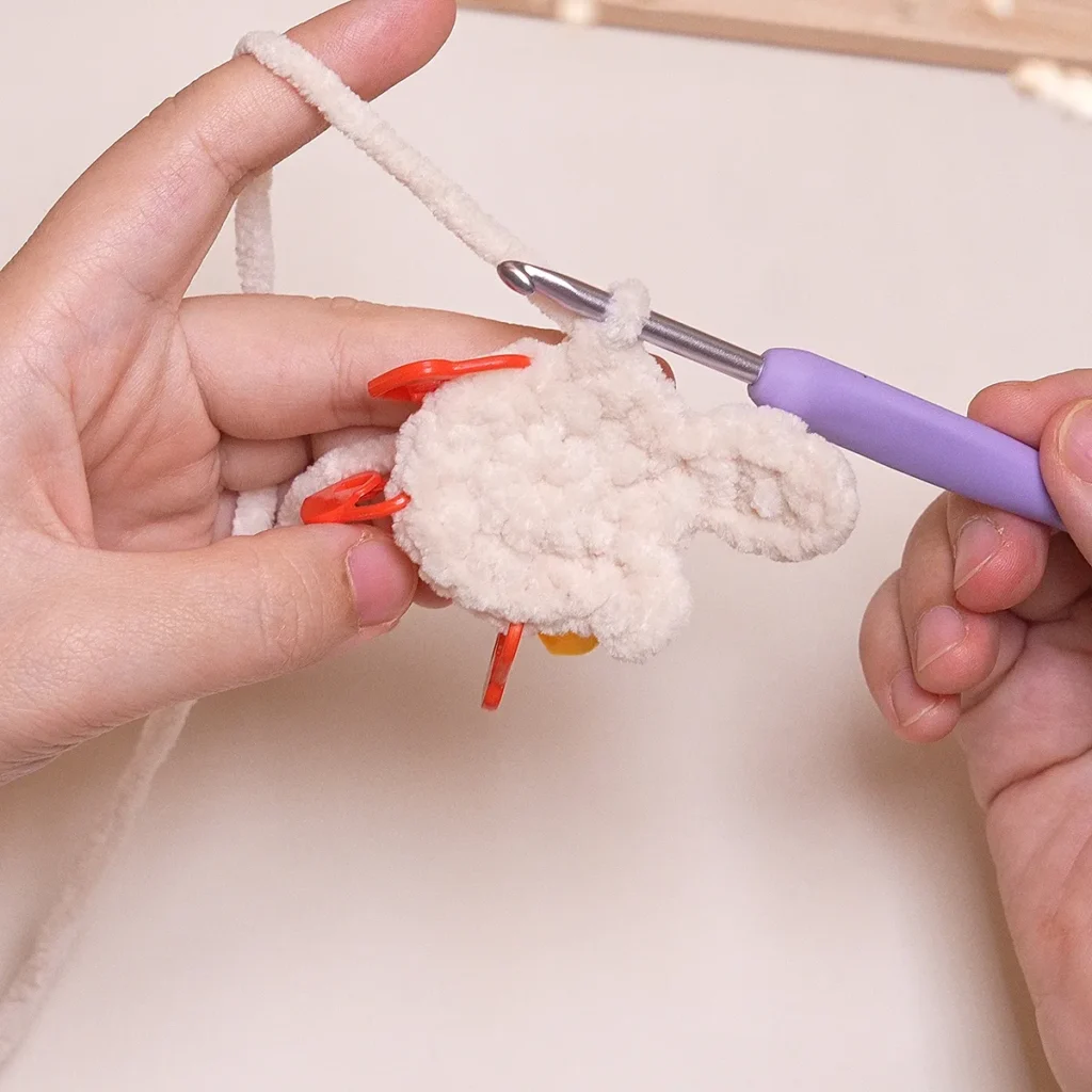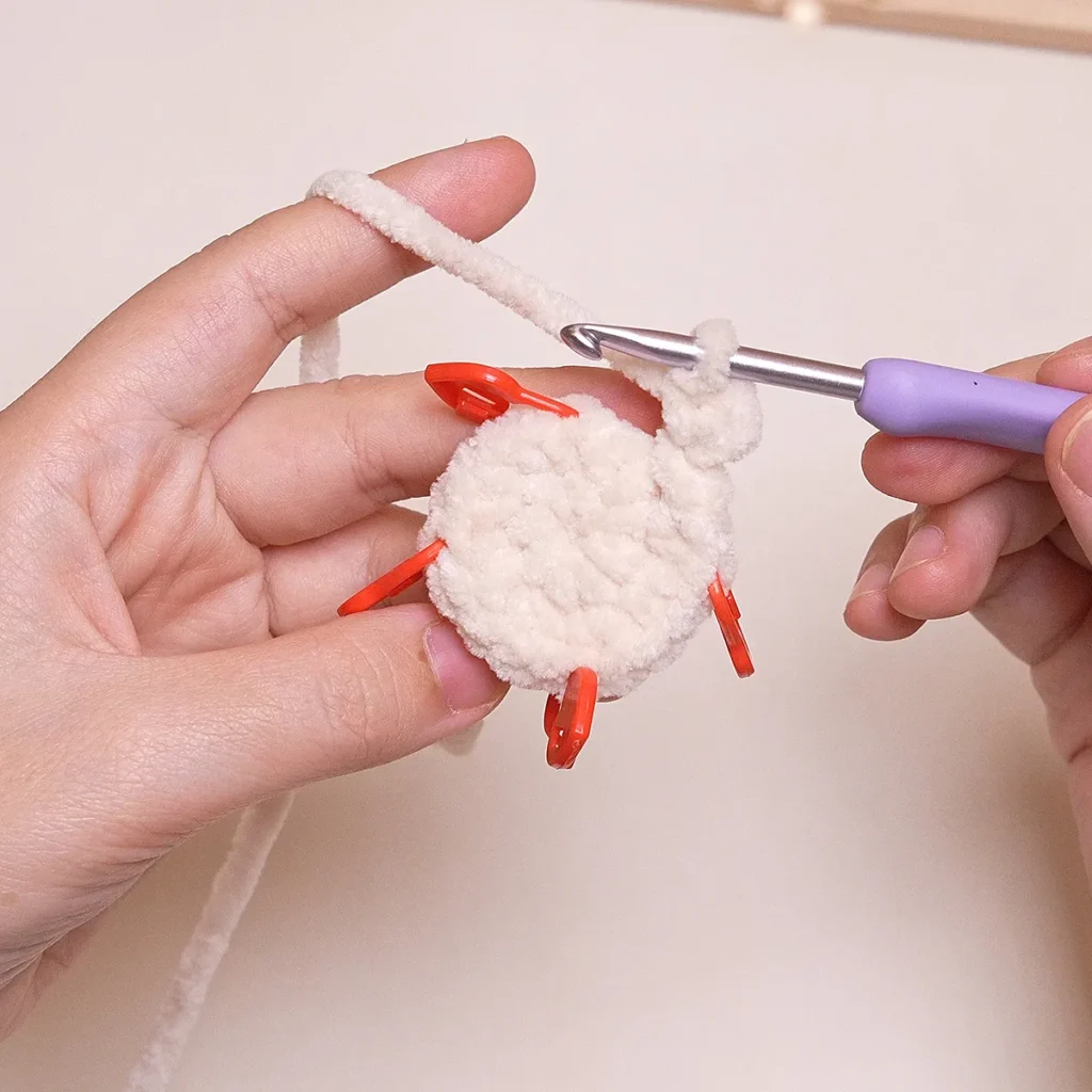 Other materials and tools: Yarn needle, scissors, fiberfill, stitch marker.
