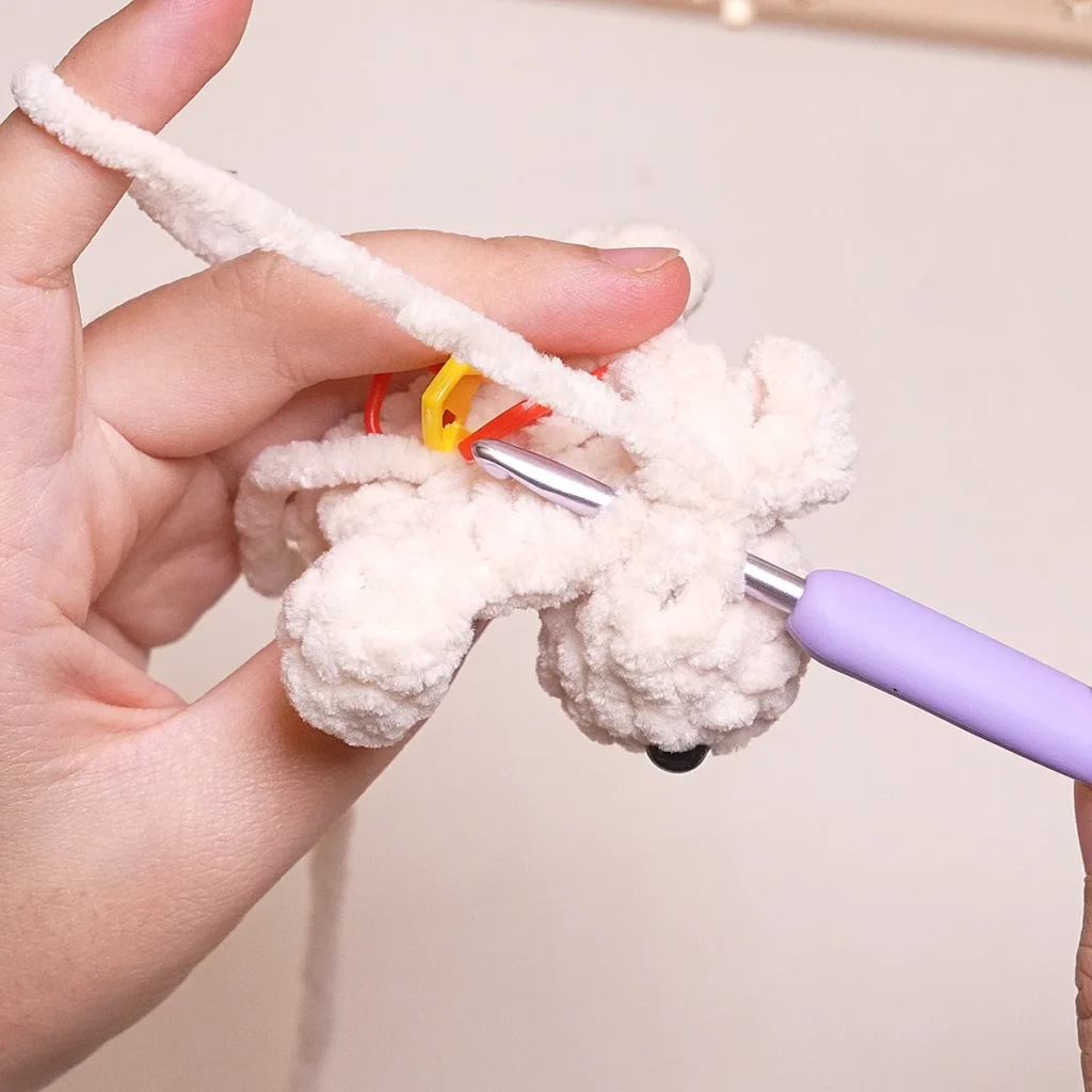 Insert safety eyes between Rnd 3 and Rnd 4 with 6 sts apart. Stuffing the head as you go.