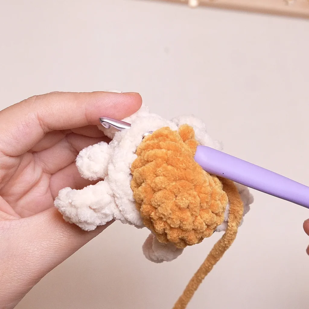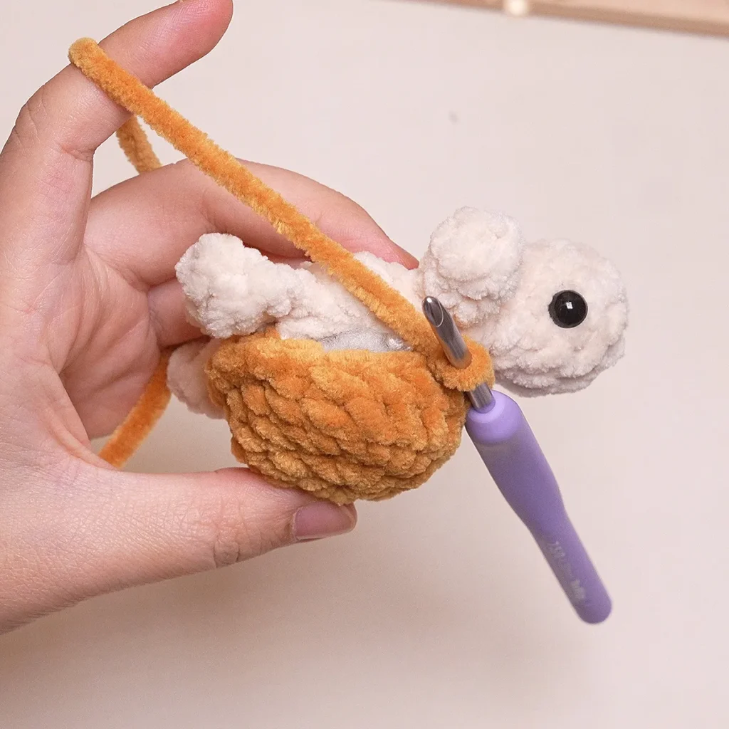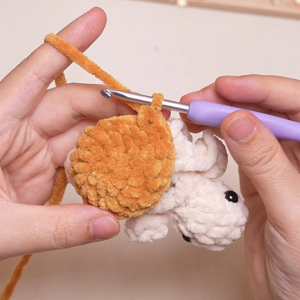 – Attach the head by crochet through both layers of the head and the shell: 3 sc.