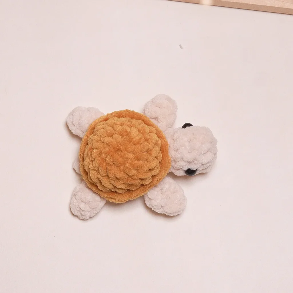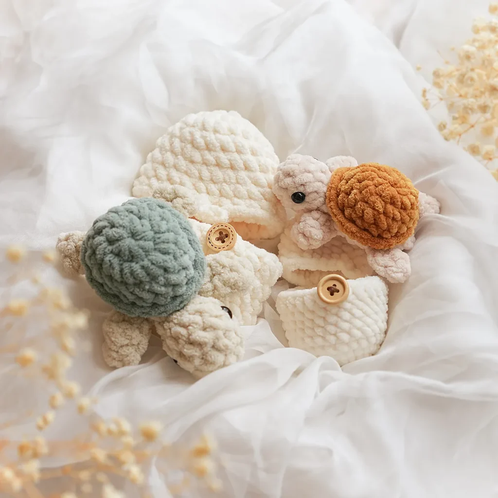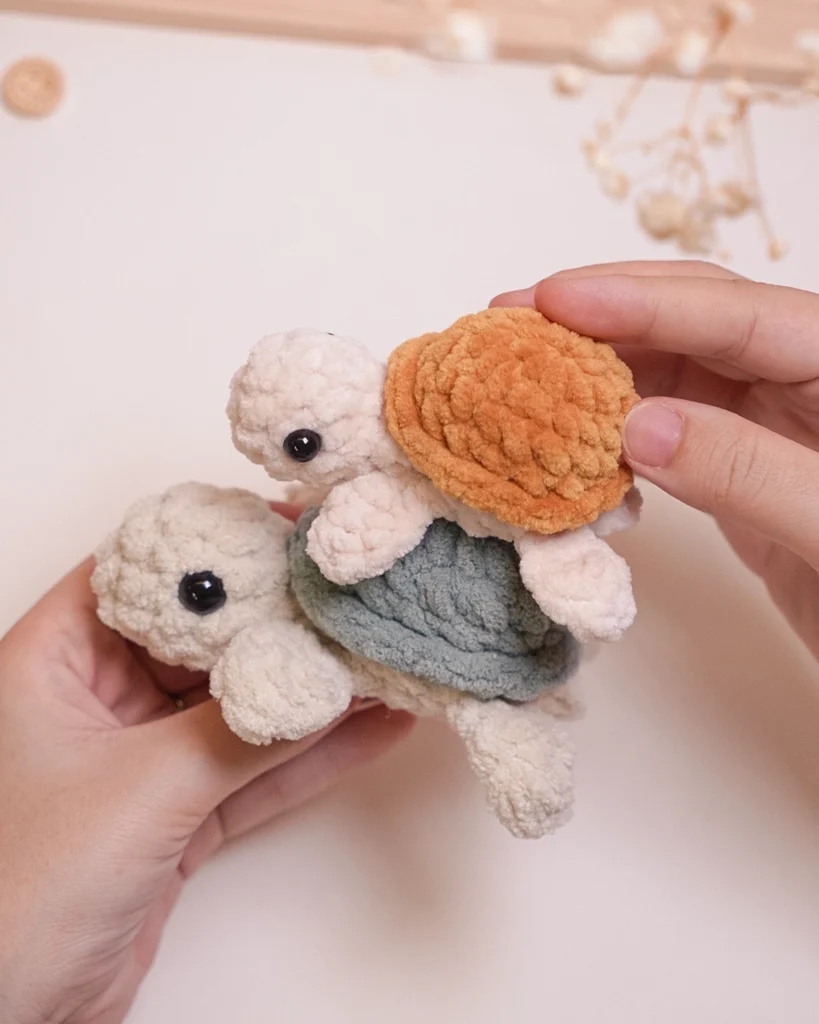 The pattern can be customized with different yarn weights to create smaller or larger turtles.